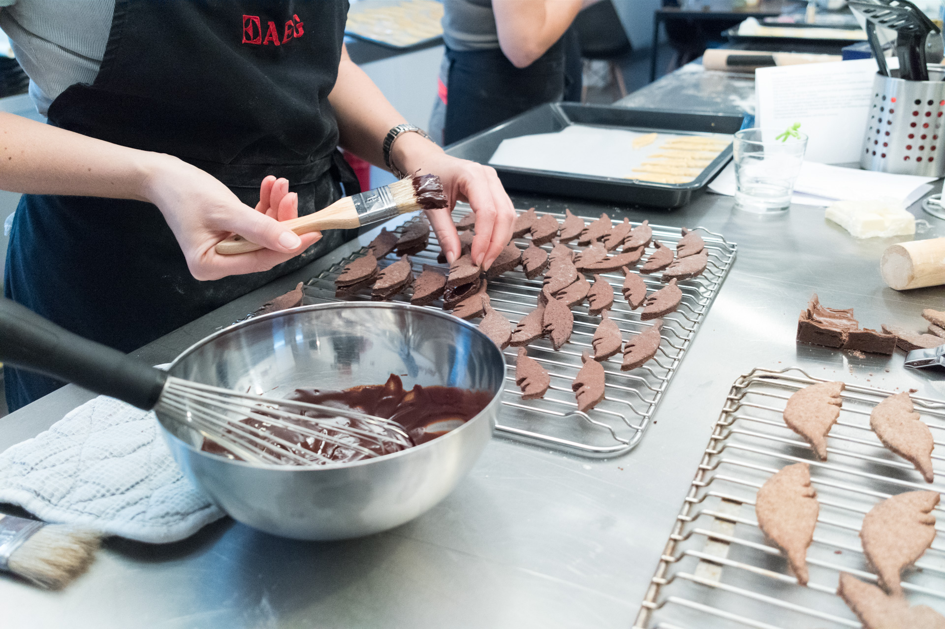 Wir haben unter fachkundiger Anleitung diverse Rezepte ausprobiert. Dank Vanille, Schokolade, Orange, Lebkuchengewürz und Co. duftete es bald sehr lecker. Auch herzhafte Cracker haben wir gebacken und eine Tartelette au chocolat, die zwar aufwendig aber unheimlich schokoladig wurde. Geschmeckt hat alles, aber wir mussten auch ein paar Pannen in Kauf nehmen.