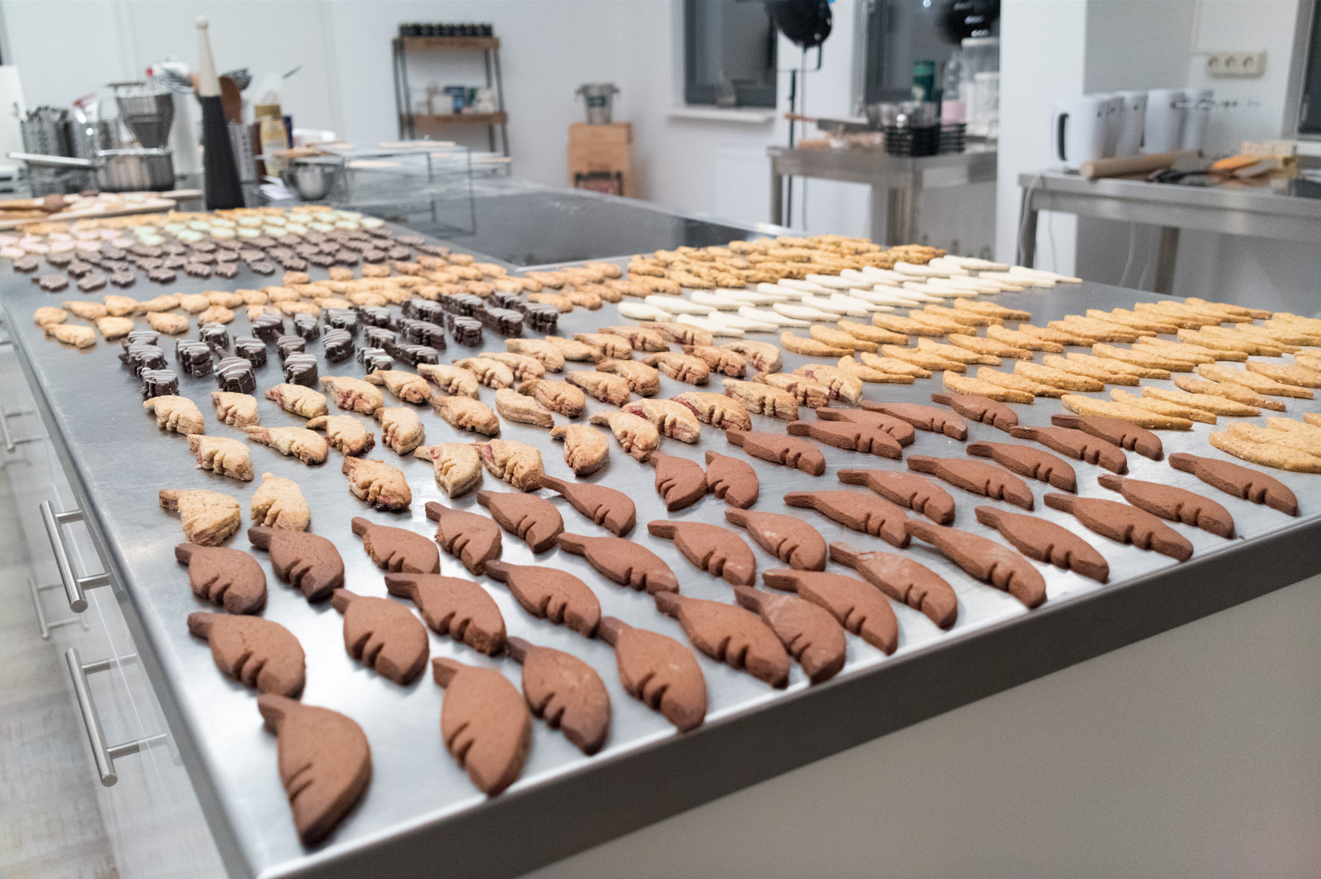 Die Form zeigt die Lessingstadt-Feder, die unser Logo schmückt! Sie ist ab sofort als Ausstechform in der Tourist-Information zu haben und wir haben damit Probe gebacken. Spaß hat es gemacht bei Katrin Beddies, die ihre Koch- und Patisserieschule seit April 2016 in der Schweigerstraße betreibt, aber es war auch ganz schön anstrengend. Da weiß man hinterher, was so ein Meisterbäcker für eine Leistung bringt.