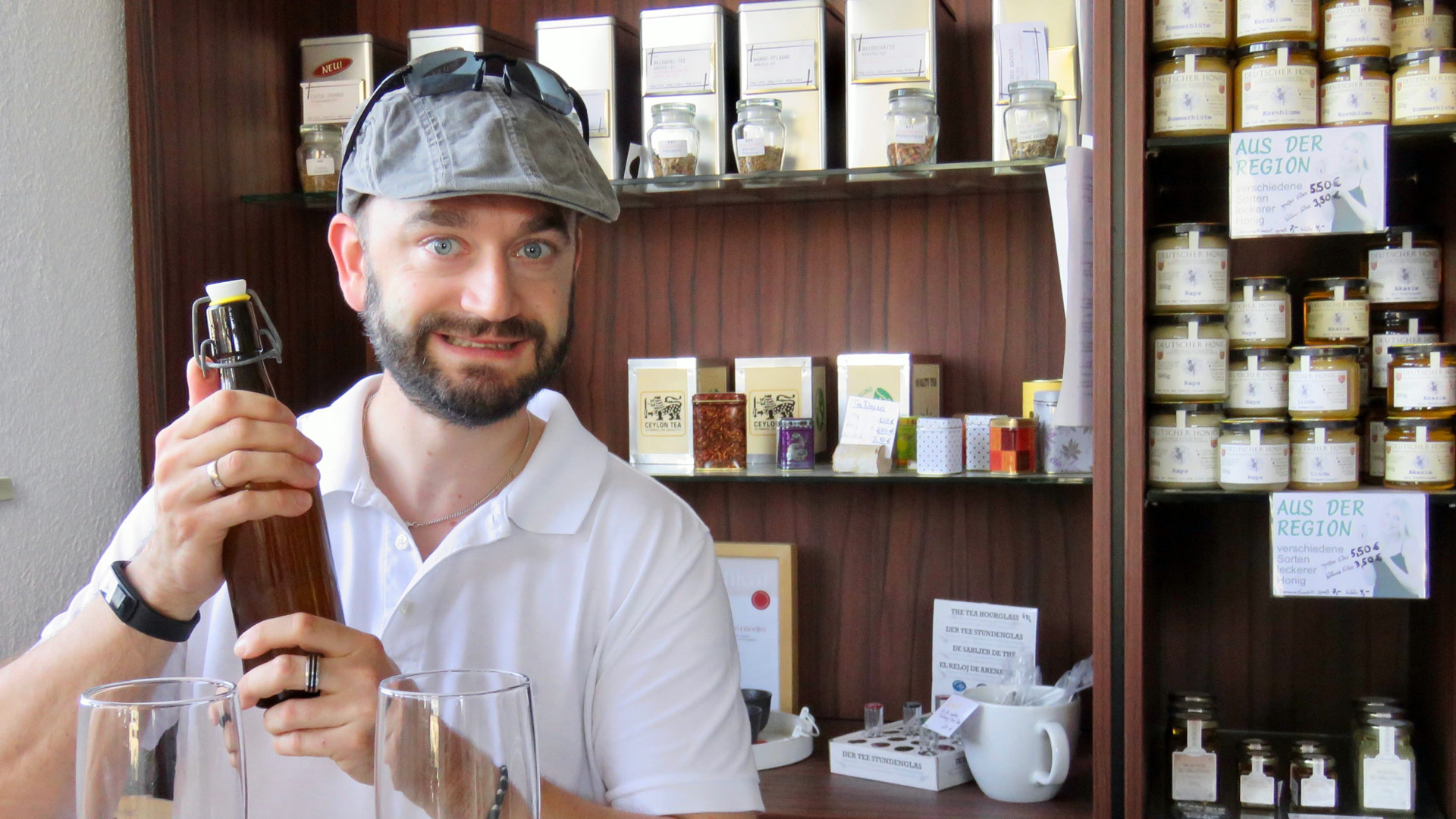 Das »Denver’s Haus« ist momentan ein Teeladen in dem Feinkost, Dekosachen und selbst gebrautes Bier verkauft wird. Außerdem ist es ein Brauhaus mit Braukeller und es ist auch ein Fotostudio. »Irgendwann sind meine Frau und ich an diesem leerstehenden Haus vorbeigefahren und haben uns sofort in den Standort verliebt. Früher war hier ein Frisör drin«, erinnert sich Künzer. Wir stehen inzwischen in seinem Teelanden. Kleine Tische und Stühle laden zum Verweilen ein. Hier hat erst kürzlich ein Braukurs stattgefunden. In den Regalen stehen viele Teesorten. »Hier im Laden ist gerade viel im Umbruch«, erklärt er mir und beginnt seine Führung durch das Haus. Mit dem Tee hat seine Selbstständigkeit angefangen. Aber bevor er sich selbstständig gemacht hat besuchte er das Gymnasium im Schloss und begann nach der Schule seine Ausbildung. »An dem Tag, als ich durch das Abitur gefallen bin, hatte ich meine Lehrstelle bei der Bank in der Tasche«, lacht er. Eine Konstante im Leben von Denver Künzer ist der Gegensatz: Während er einerseits flexibel seine vielfältigen Interessen verfolgt, ist er gleichzeitig auch ausdauernd und beharrlich, wie zum Beispiel bei seiner Arbeit in der Bank.
