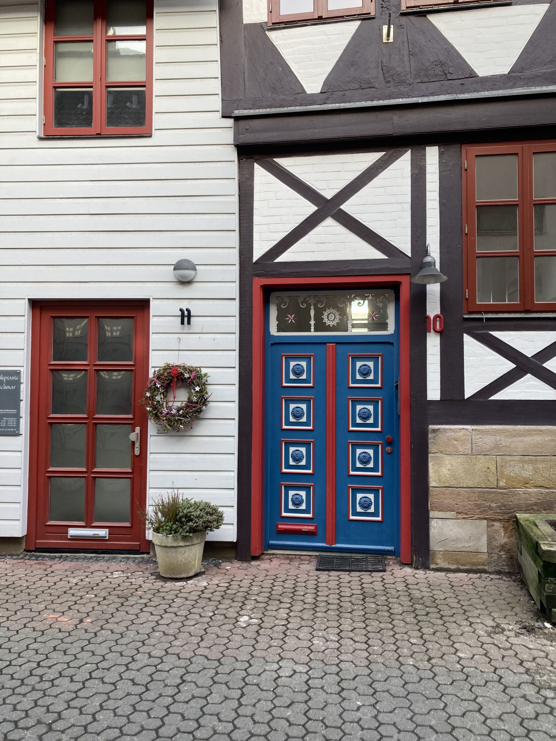 Ich biege links ab und gehe am schmalsten Haus in Norddeutschland vorbei.