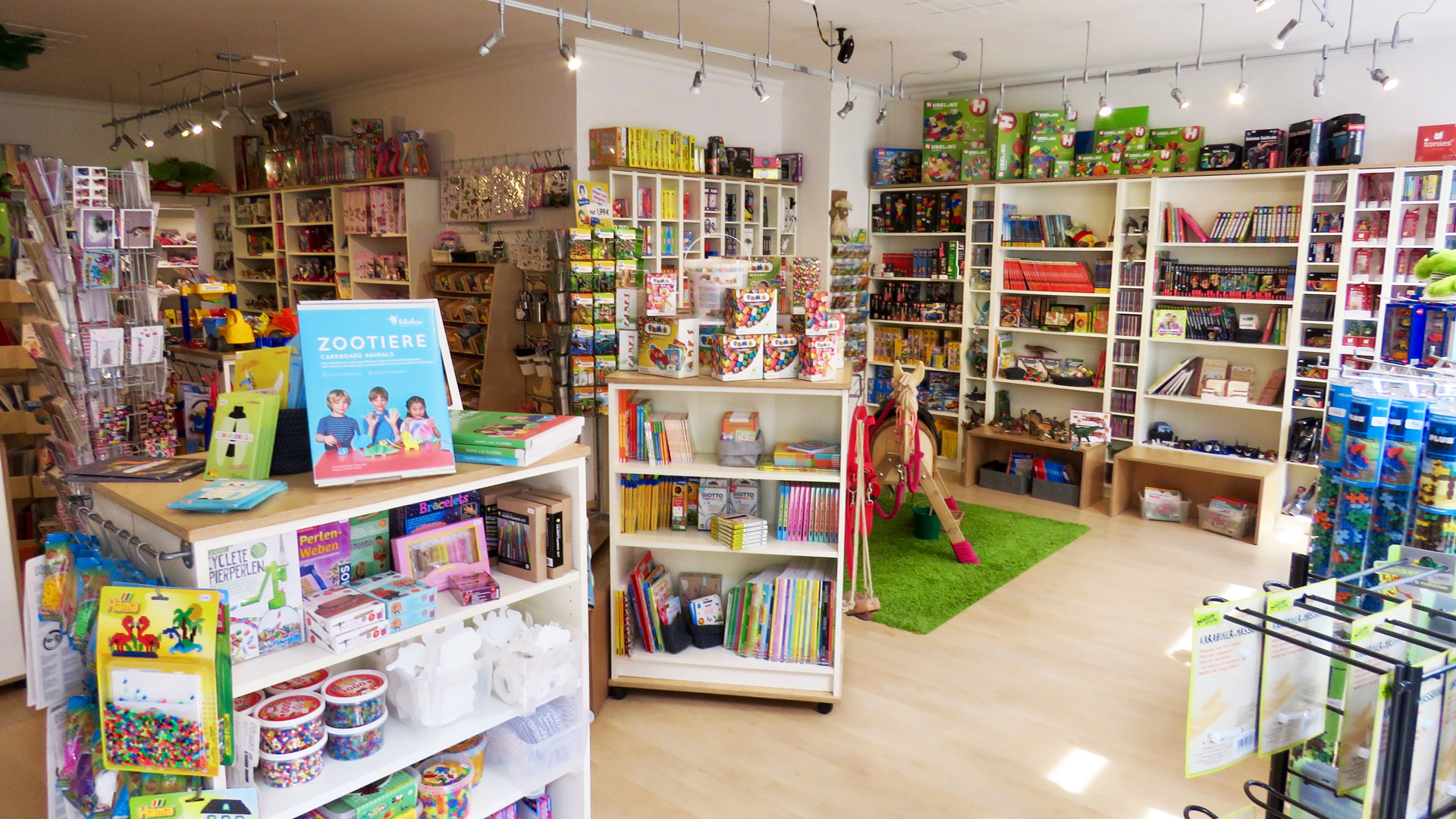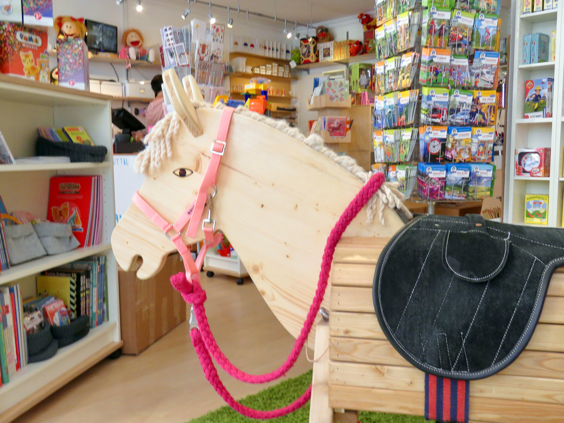 In der Mitte des Geschäfts steht ein Holzpferd – Susi. Bald wird dort alles zum Thema »Schulanfang« oder »Urlaub« stehen. Vielfalt ist Britta Michel in ihrem Laden wichtig. Davon profitieren die Kinder, bei denen die »Geschenkboxen« des Entdeckerladens besonders beliebt sind. Das funktioniert so wie die Hochzeitstische früher. »Die Kinder geben ihre Wunschliste bekannt und die Freunde suchen sich dann das passende Geschenk aus«, erklärt sie mir das Vorgehen. »Die Geschenke zum Kindergeburtstag werden bei uns stark nachgefragt. Daher haben wir auch viele kleine Geschenke in unserem Sortiment«, so Britta Michel.