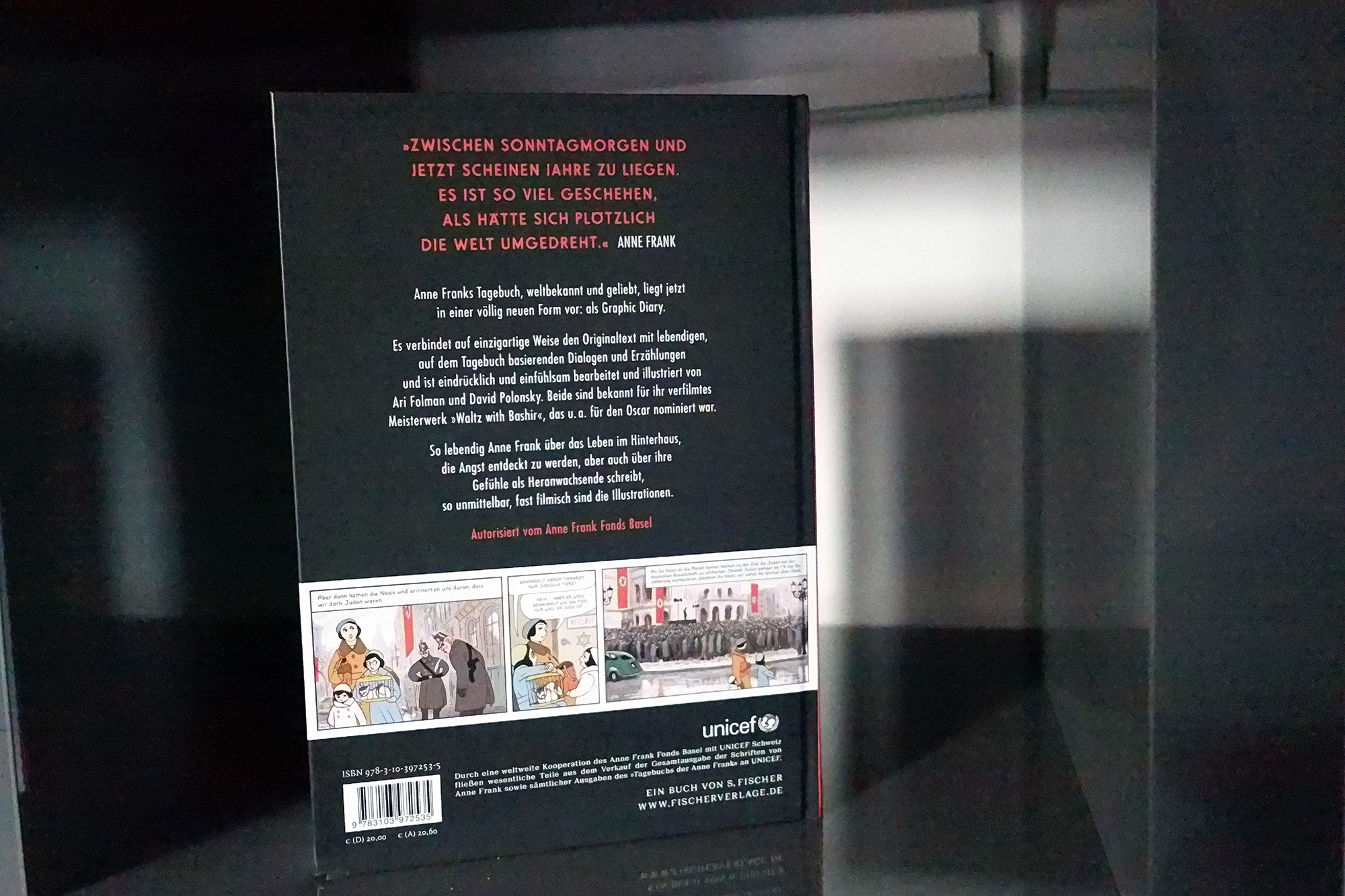 PS: Durch eine weltweite Koperation des Anne Frank Fonds Basel mit UNICEF Schweiz fließen wesentliche Teile aus dem Verkauf an UNICEF. Das finde ich toll und nenne deshalb auch gern den S. Fischer Verlag, in dem das Buch erschienen ist.