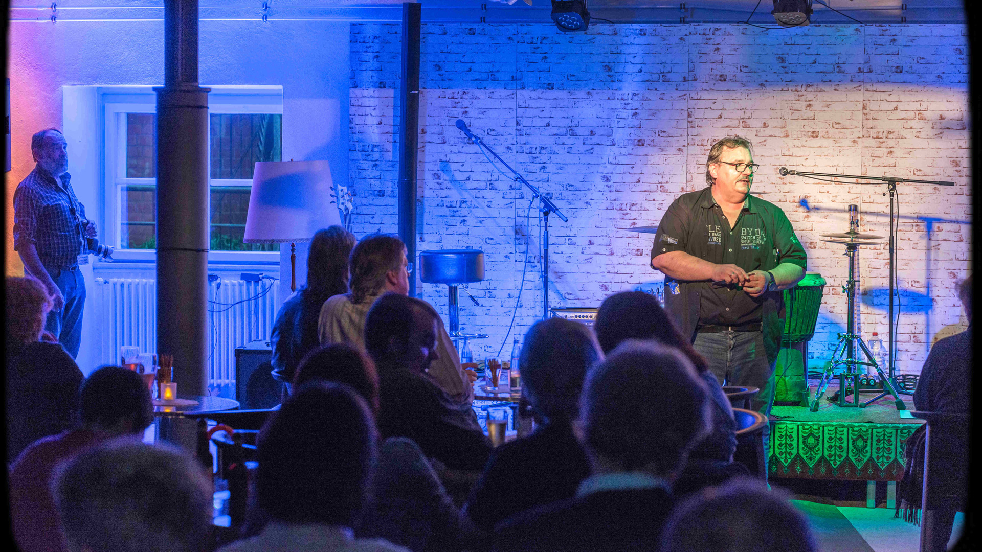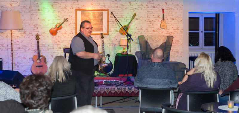 Für viele Wolfenbütteler ist bluenote natürlich ein Begriff, aber wie fing es denn an mit dem Verein? Wie kommt jemand, der bei Volkswagen im Maschinenmanagement arbeitet dazu einen Verein mit Schwerpunkt irischer Musik zu gründen? Horst Krups berichtet mir von seiner ersten Begegnung mit Dave, Ende der 90er Jahre, der einen Pub in der Mühlenstraße eröffnet hatte. Im Kellys Irish Pub fingen Horst und sein Bruder Norbert an, sich bei den Konzerten um die Technik zu kümmern. Nach zwei Jahren wurden dem Wirt die Konzerte allerdings zu teuer und Horst und Norbert gründeten den Verein bluenote im Kellys. Am 11.1.2001 gegründet, wird der Verein 2019 übrigens volljährig! Horst und Norbert und 11 weitere Verrückte gehörten zu den Gründungsmitgliedern. Anfangs machten sie noch Konzerte im Kellys, dann im Schloss Wolfenbüttel, im Foyer der Lindenhalle und seit 15 Jahren haben sie ihr Zuhause in der Wolfenbütteler Kommisse gefunden. Die Anfangsjahre waren schwierig, erzählt mir Horst Krups, vor allem finanziell. In der Kommisse hat der Verein mit ruhigen Konzerten angefangen, Acustic Stage genannt, erklärt mir Horst. Nach den vielen Jahren ist bluenote in der Kommisse nun wie zu Hause. Und hat seit kurzem ein neues Konzept, bluenotes Gute Stube: es gibt so wenig Technik wie möglich, die Musiker machen ganz zwanglos Musik und das Publikum ist nah an den Musikern. Zur Gemütlichkeit trägt auch die Kulisse bei, das sind tapezierte Rückwände mit Bildern und kleinen Musikinstrumenten geschmückt und auch ein Ohrensessel steht auf der Bühne.