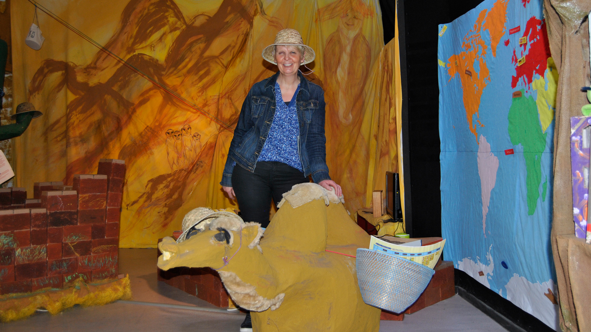In der Wüste wartet schon das freundliche Kamel Isabelle auf die Forscher. Mit Hilfe eines Seilzuges wird hier Sand gegen Wasser getauscht.