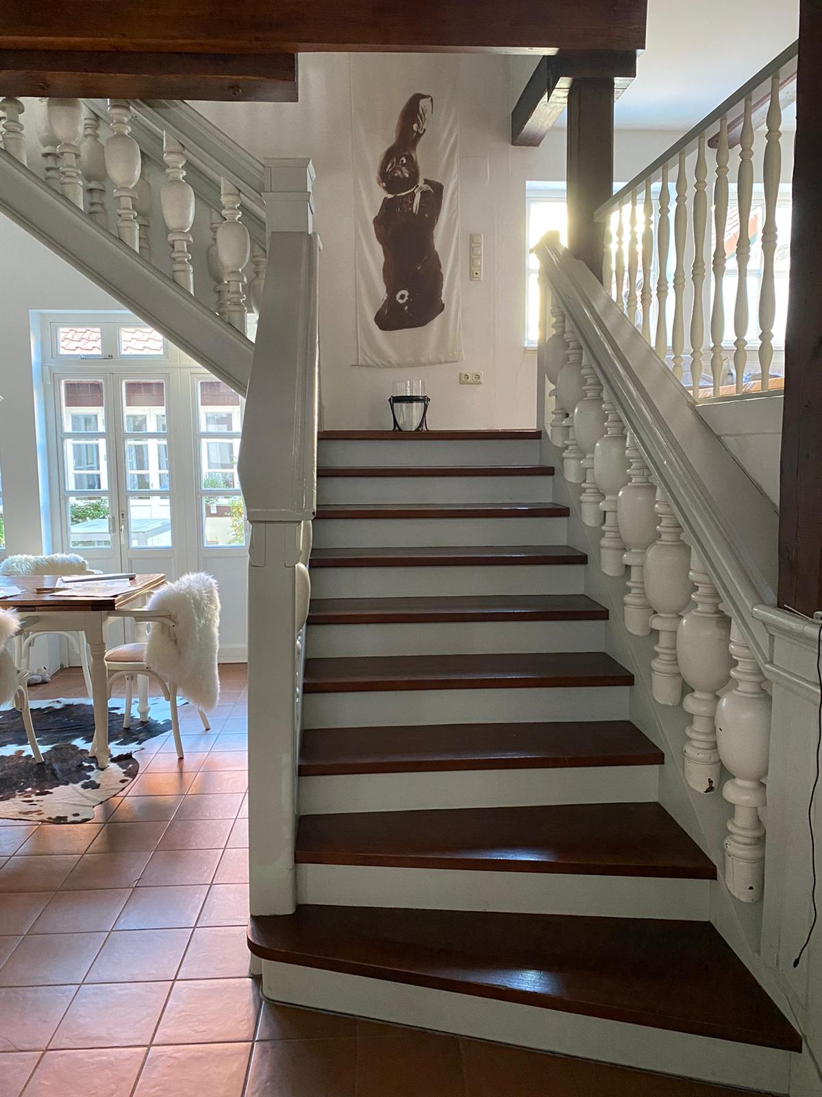 Mit einem Begrüßungsgeschenk im Gepäck holte ich meine beste Freundin vom Bahnhof ab. Natürlich war die Freude riesig. Fußläufig machten wir uns auf den Weg zu unserer Airbnb Wohnung im historischen Fachwerkhaus und wurden bereits von Stefanie, Burkhard und Hund Jette sowie den Katzen in Empfang genommen. Das Haus befindet sich in einer Nebenstraße, mitten im Herzen Wolfenbüttels. Das Studio unter dem Dach, das die beiden an Besucher vermieten, ist ein wahrer Traum und hält alles bereit, was man selbst von einem Hotelbesuch nicht besser erwarten könnte. Inklusive eines Betthupferl auf unseren Kissen. Küche und Garten können wir jederzeit nutzen. Wir sind hin und weg und das nicht nur von der Unterkunft, sondern auch von den Gastgebern.