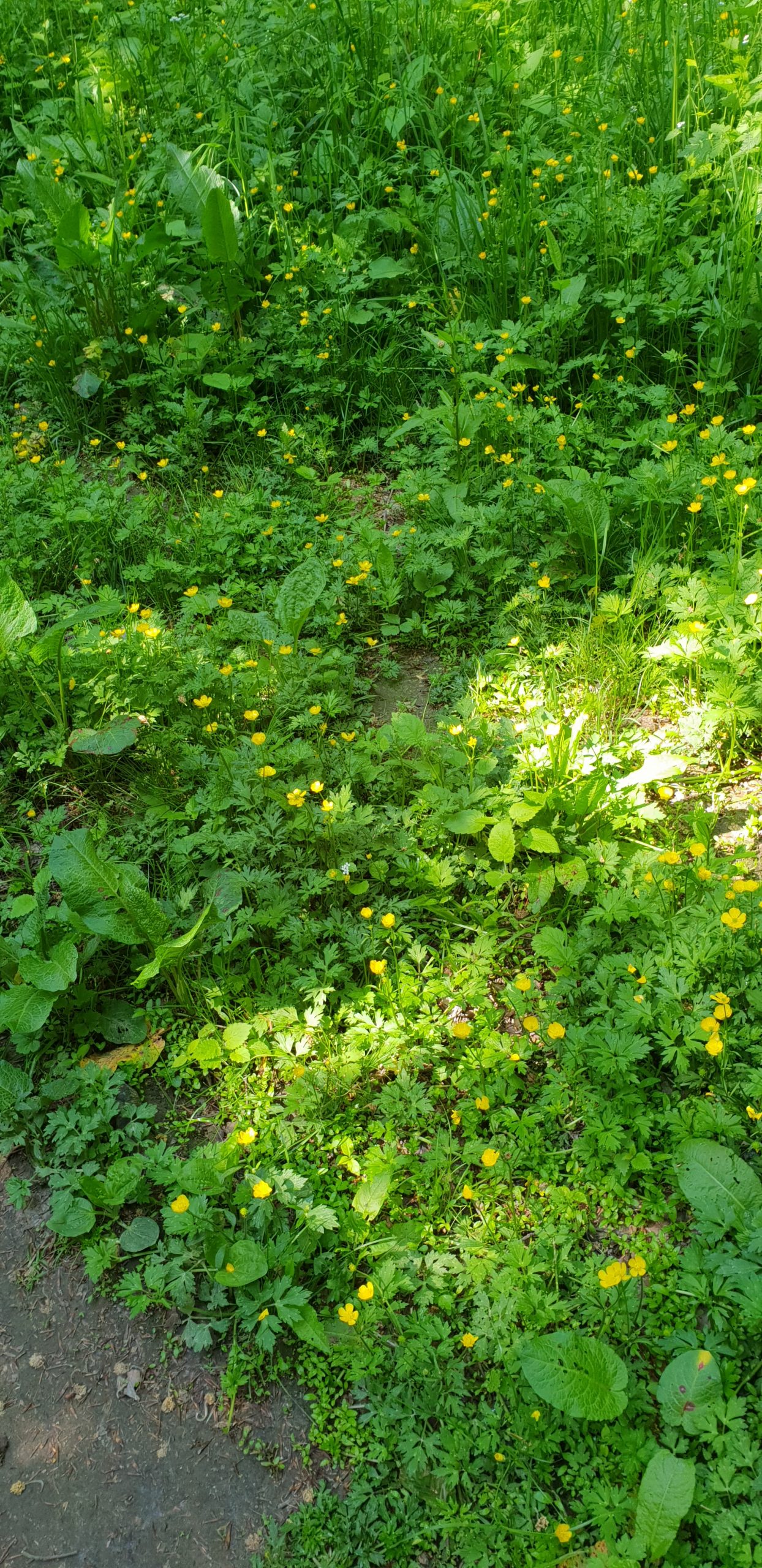 Auf einem kleinen Parkplatz links kurz vor der Ortsausfahrt kann man kostenfrei parken. Von dort ist man in nur wenigen Schritten bereits im Fümmelser Holz angekommen. Am Eingang geht es direkt in das üppige Grün des duftenden Waldes. Auf einem schmalen Weg werde ich rechts und links von großen Brennnesselfeldern begleitet. Zwischendrin strahlen leuchtend gelbe Butterblumen hervor.