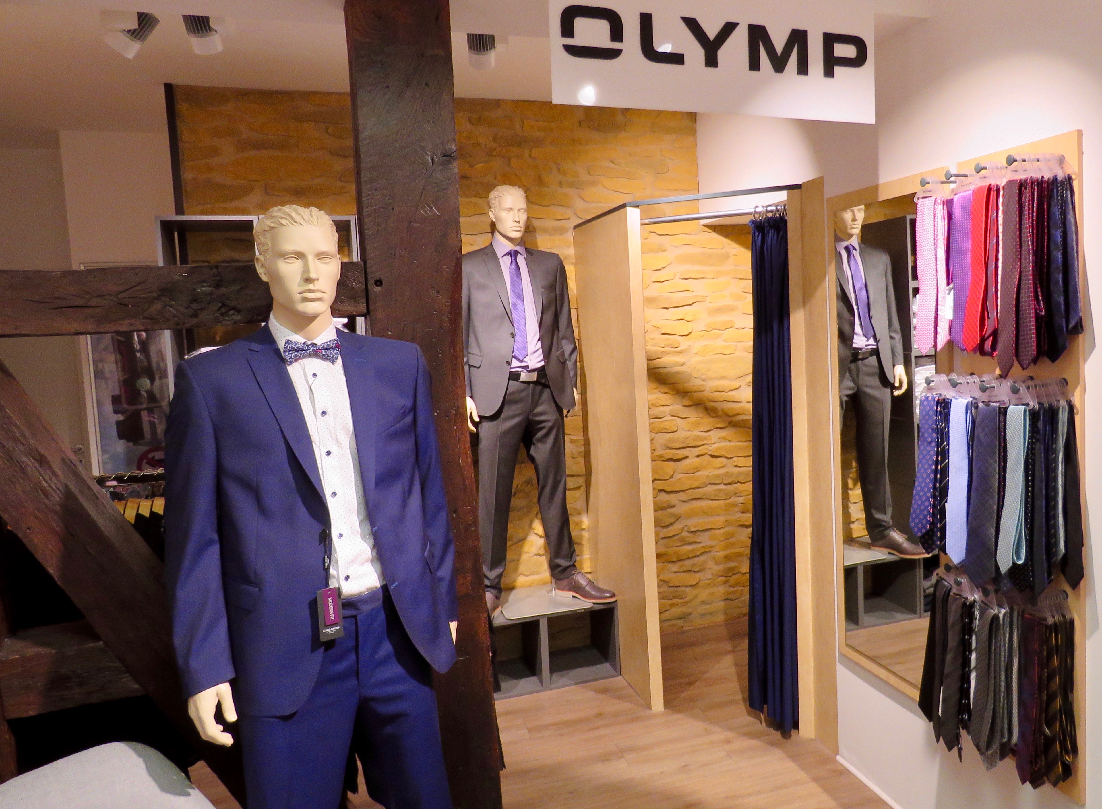 Als ich Karl-Heinz Stahlmann diese Geschichte erzähle, lacht er. Wir sitzen in der Kanzleistraße. »Das waren eigentlich früher zwei Grundstücke«, klärt mich der Modefachmann gleich bei der Begrüßung auf. Sein Geschäft, das er mit seiner Frau Maritta seit 2014 in Wolfenbüttel führt, ist gleich das zweite auf der Langen Herzogstraße. »Hier hinter dem Tresen floss die Oker und da fängt eigentlich die Kanzleistraße an«, schmunzelt der Geschäftsinhaber und Kaufmann, während wir eine kleine Treppe auf die zweite Ebene gehen. Ich bekomme den gemütlichen Besuchersessel für bummelmüde Zeitgenossen. Karl-Heinz Stahlmann setzt sich auf den Stuhl. Die Klimaanlage sorgt für ein angenehmes Klima, das einer verirrten Wespe wohl zu kühl ist. Sie sucht beständig den Weg nach draußen, während wir uns unterhalten. Ich sitze zwischen Anzügen, Pullovern und Hemden. Die Einrichtung wirkt zeitlos modern. »Sie werden lachen. Genau das höre ich auch immer wieder, wenn die Leute erst einmal hier waren. Denn vom Hosenträger, über T-Shirts, Polohemden, Anzügen, Krawatten, bis zu Unterwäsche, ja sogar Schlafanzügen haben wir alles, was der Mann braucht. Wir kleiden sozusagen von Kopf bis Fuß ein«, berichtet Stahlmann selbstbewusst.
