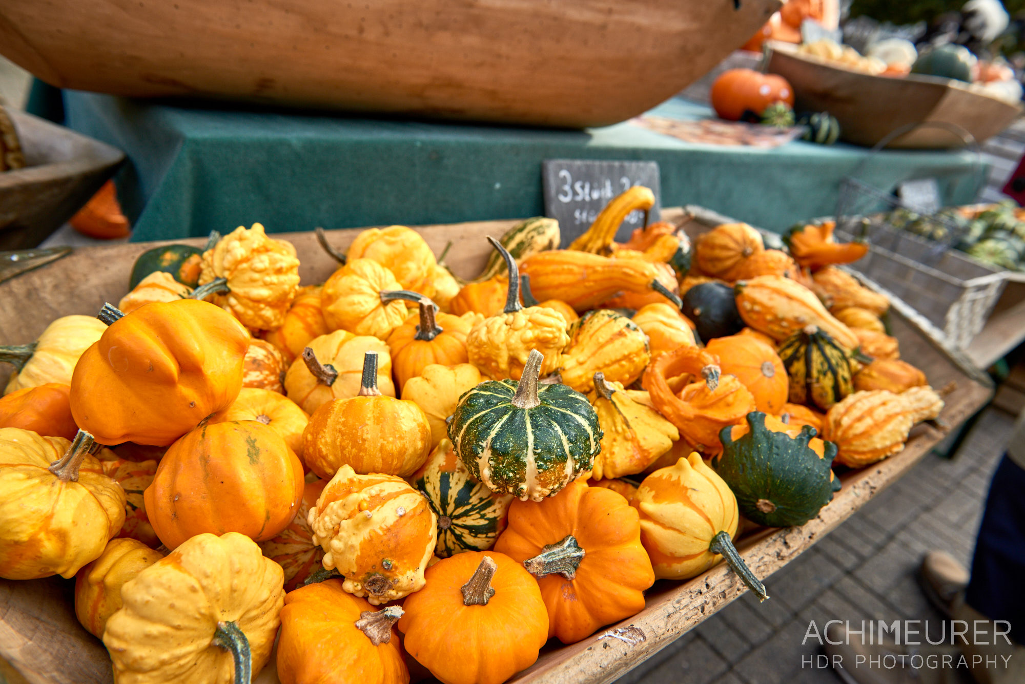Der Markt, das sind raue Kisten, schicke Verkaufswagen, einfache Tische, aufgetürmte Ware, werbende Frauen und Männer, ein Gewusel von Menschen – vor und hinter den Ständen. Der Markt ist nicht überdacht, allenfalls für den Augenblick des Einkaufs. Im Sommerregen suchst du Schutz, und wenn es im Winter richtig kalt ist, dann gibt es kurze Erholung unter den Planen, die als Zelt schützend vor das Gemüse gespannt sind. Als Kind habe ich während der Wintertage oft an den Maroni-Mann denken müssen, der immerzu fror und dem die »Kleine Hexe« half.